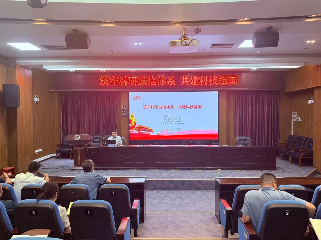 为强化全校师生及医护人员的科研诚信意识,规范科研经费使用,营造风清气正、求真务实的良好学术生态和科研环境,2025年10月10日,宁德师范学院召开科研诚信讲座。福建省科技厅科研诚信宣讲团专家、福建师范大学法学院副教授林少东应邀作主题宣讲。