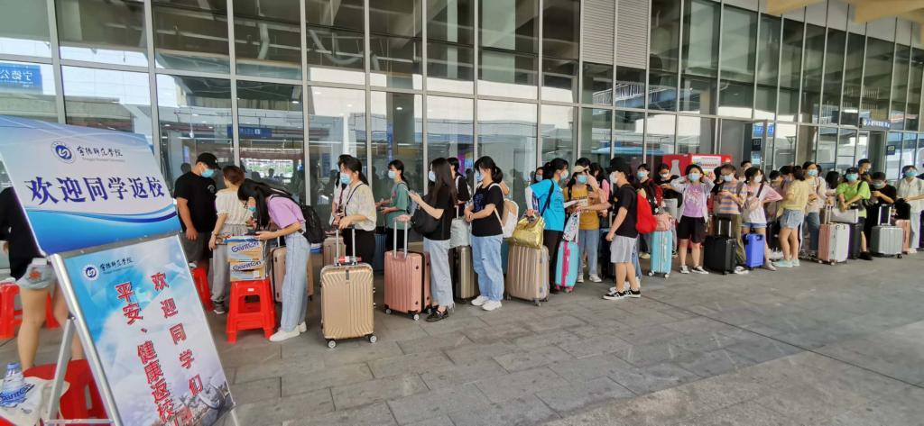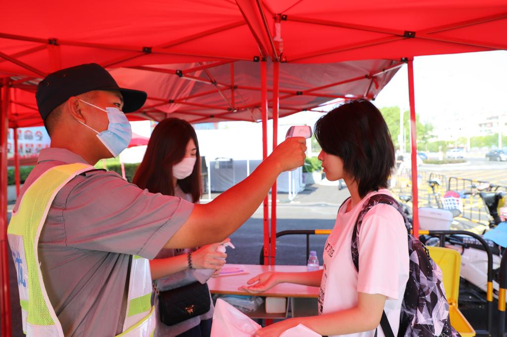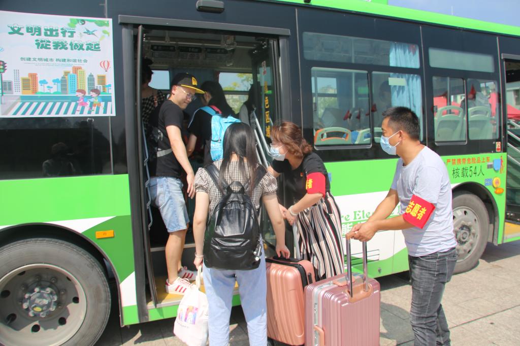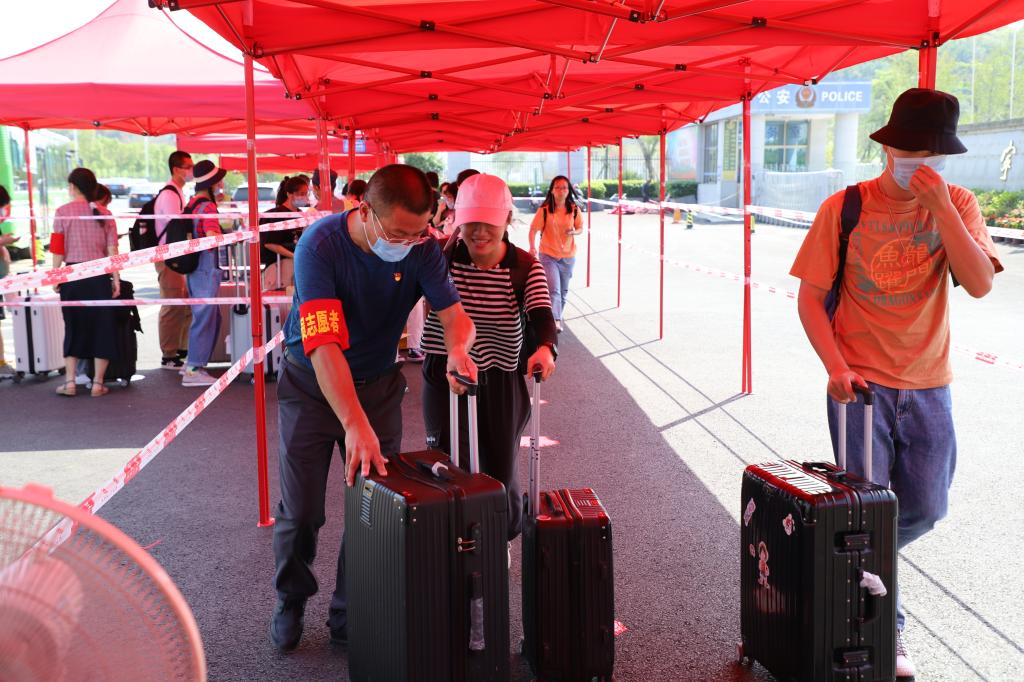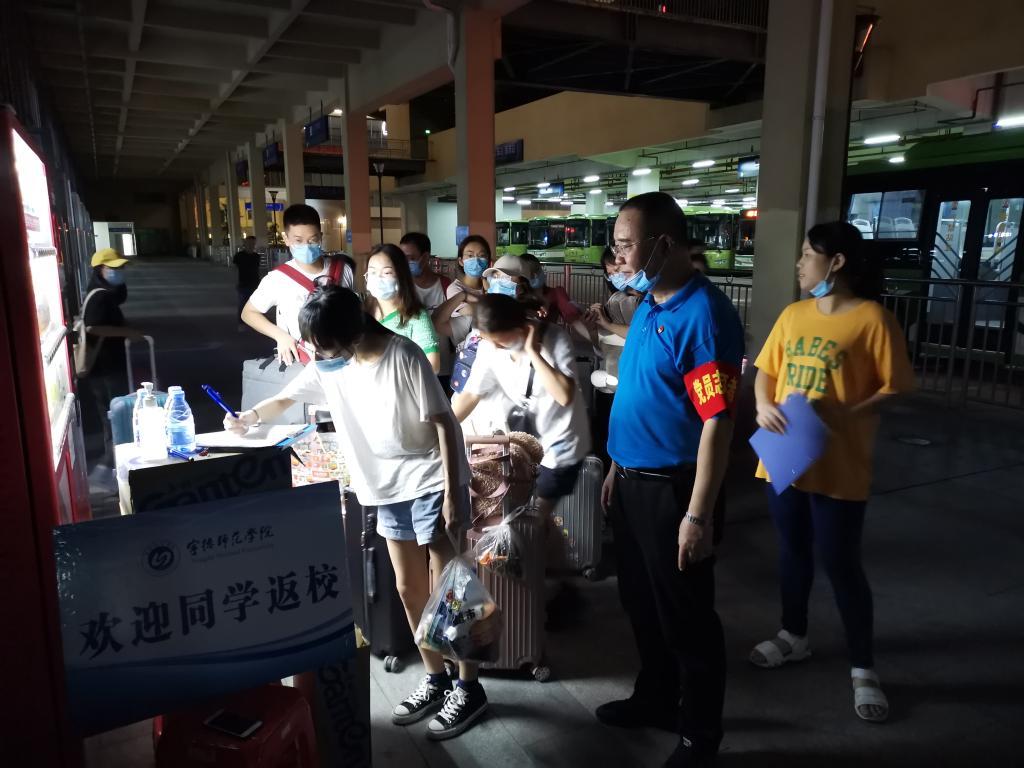 报到现场,学生下车后立即进入专用通道,由工作人员指引,完成健康码核验、测温、消毒等程序,即可乘坐校园摆渡车返回宿舍,教师党员志愿者负责维持秩序和指引,相关职能部门通力协作,整个报到流程通畅快捷,报到现场井然有序。