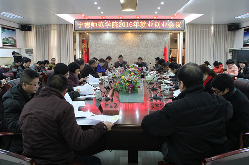 3月10日下午,我校在东侨校区求知楼会议室召开宁德师范学院2016年毕业生就业创业工作会议。校党委书记江小源、校长林跃鑫、副校长谢向东、校毕业生就业工作领导小组成员、各系党政领导、全体辅导员及校职业发展中心成员参加会议。会议由林跃鑫校长主持。