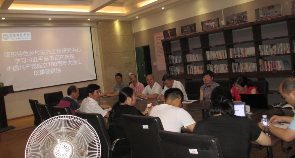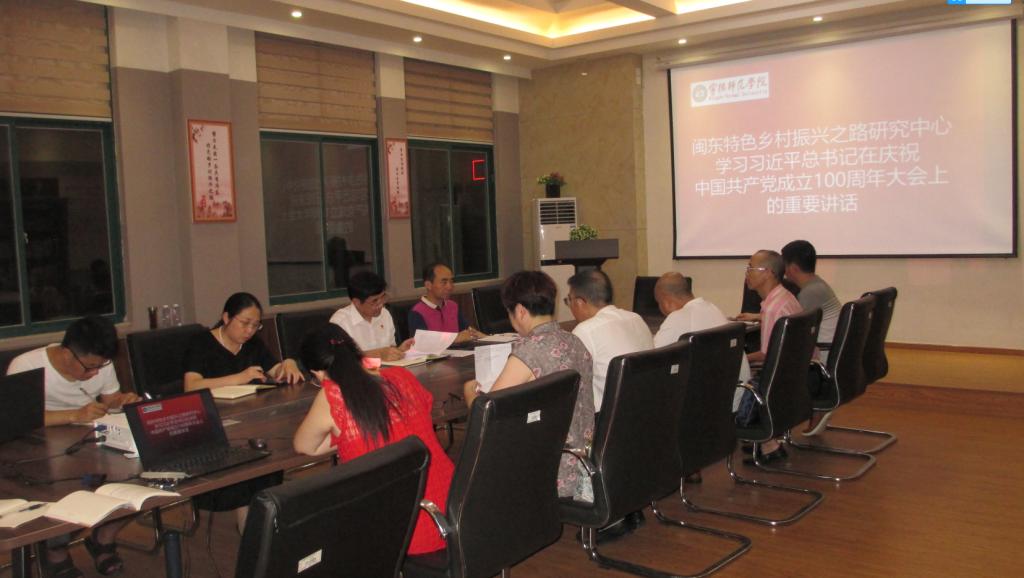 2021年7月7日晚上19点,闽东特色乡村振兴之路研究中心召开学习习近平总书记在庆祝中国共产党成立100周年大会上的重要讲话精神专题研讨会,研究中心主任兼首席专家魏远竹教授出席会议。会议由研究中心秘书李乾宝教授主持,学校科研处负责人、中心方向负责人、部分二级学院院长、中心主要成员、研究基地重大项目负责人等参加了本次会议。