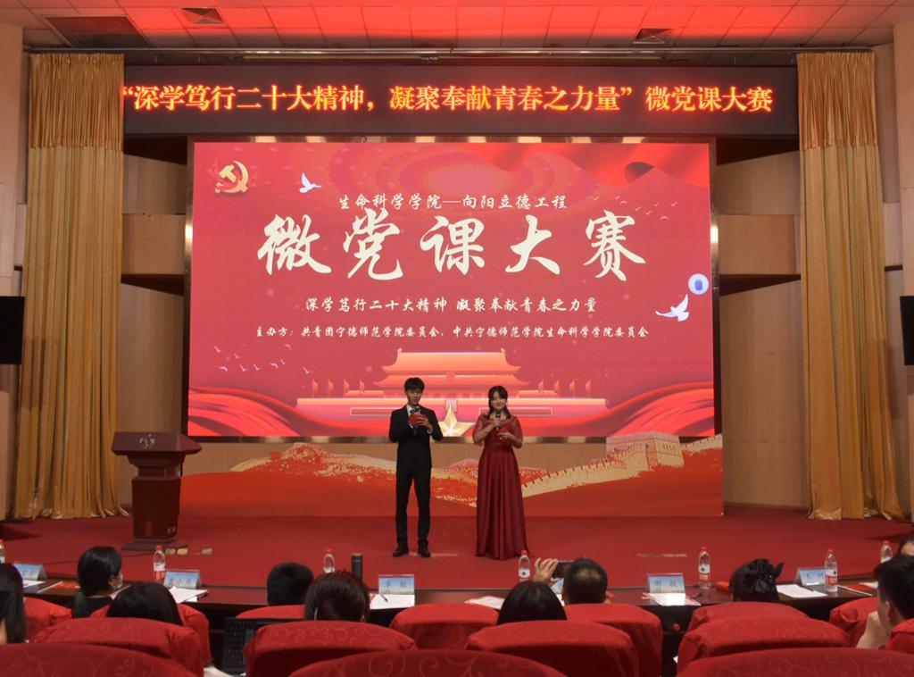 为深入学习宣传贯彻党的二十大精神,不断推动习近平新时代中国特色社会主义思想主题教育在青年学生中走深走实,6月6日,生命科学学院与校团委共同举办“深学笃行二十大精神,凝聚奉献青春之力量”微党课大赛决赛。