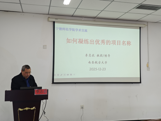2025年12月23日下午,南昌航空大学李志农教授应邀作题为“如何凝练出优秀的项目名称”的学术报告。报告会由信息工程学院肖顺根院长主持,学校相关专任教师参加会议。