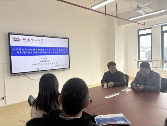 为助力我校教师提升国家自然科学基金(NSFC)申报书撰写质量,破解项目申报中的核心难点,2026年1月6日下午,科研处联合海洋学院特邀福建师范大学博士生导师何勇锦研究员莅校开展以“水产养殖类NSFC标书的打磨与升华—以‘异养条件下阶段氮调控提高小球藻合成蛋白质机制的研究’为例”为主题的专题讲座,海洋学院全体教师参加。