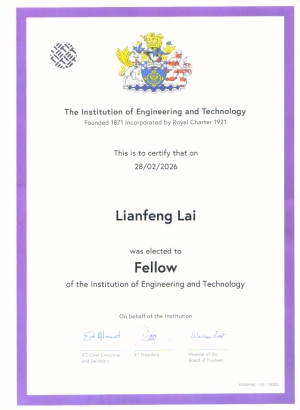 近日,经英国工程技术学会(IET)批准,我校机电工程学院赖联锋教授当选为英国工程技术学会会士(IET Fellow)。
