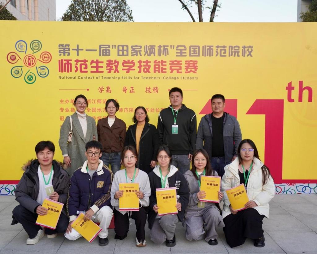 11月28日-11月30日,第十一届“田家炳杯”全国师范院校师范生教学技能竞赛决赛在浙师大举行。本次竞赛共吸引了来自全国289所院校的2345名选手参加,参赛院校数与选手数均创历史之最。决赛阶段共有来自178所院校的564名选手到现场参加决赛。我校共有10名选手参加高中学段(英语、思想政治教育、数学与应用数学、物理学、化学、生物科学)、初中学段的科学(生物)、体艺组(音乐)及小学教育(综合)等10个组别的比赛,最终获得二等奖6项、优胜奖1项的好成绩。