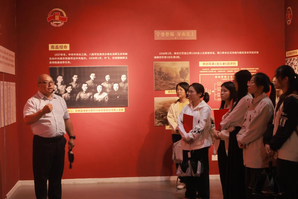 10月28日,宁师学子走进闽东畲族博物馆,馆长雷志华以详实的史料回顾闽东军民浴血奋战的峥嵘岁月。这场“场馆里的思政课”,通过实物见证与口述历史,将抽象的革命精神具象化为可感可知的历史现场;10月29日,“青马工程”大学生骨干班和“读书社”学员赴霍童桃花溪等革命旧址开展实践研学,学员们在百丈岩的峭壁间感受英雄气概,在中国工农红军闽东独立师陈列馆和暴动旧址的文物前对话历史,这种“行走的思政课”让红色基因真正融入青春血脉。
