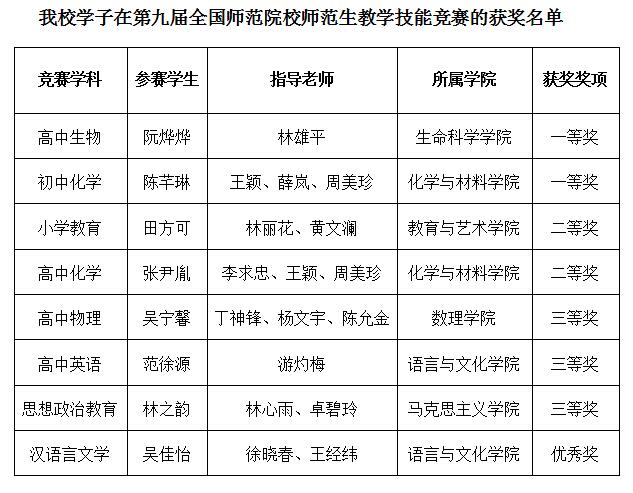 2023年12月29-31日,第九届“田家炳杯”全国师范院校师范生教学技能竞赛在浙江师范大学顺利举行。经过激烈角逐,我校共获一等奖2项、二等奖2项、三等奖3项、优秀奖1项,实现了我校在本项赛事上的历史性突破。