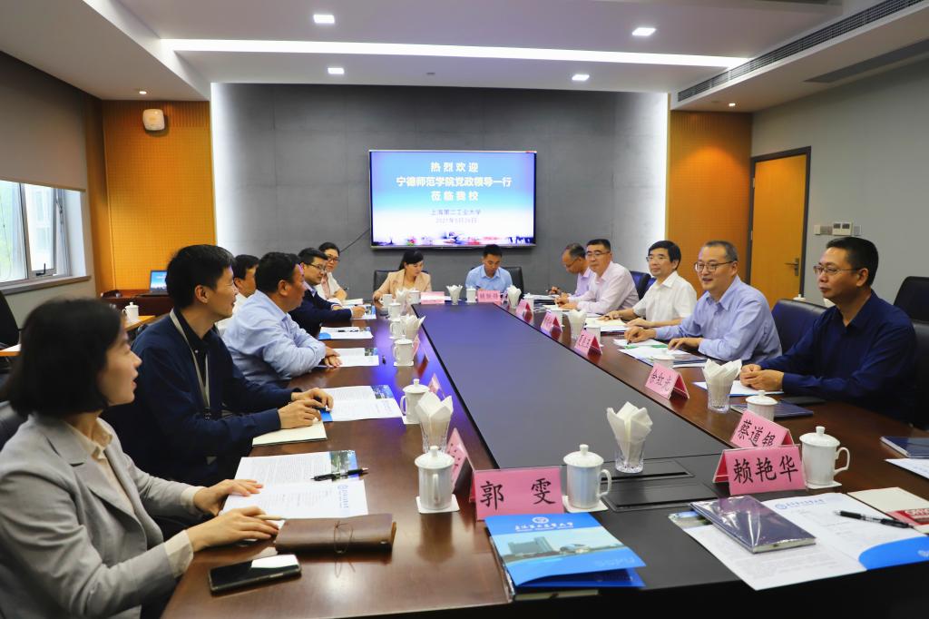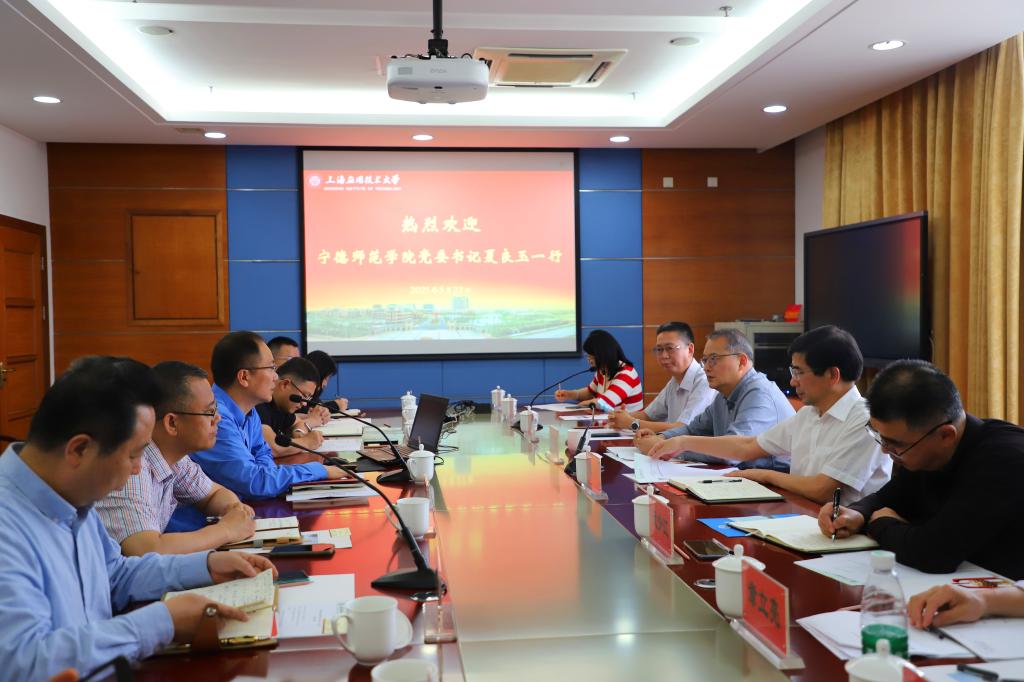 在上海应用技术大学,校党委书记郭庆松、副校长毛祥东和相关学院、部门负责人参加交流。双方就应用型大学办学模式、产教融合、科技成果转化等方面进行深入交流,相关学院、部门还进行对口交流。夏良玉指出,上海应用技术大学在应用技术型办学模式、香料香精化妆品、食品加工、新材料研发等方面具有明显优势,可以深入开展合作为闽东乡村振兴特色产业服务。郭庆松指出,宁德是习近平新时代中国特色社会主义思想的萌发地,具有十分广阔的发展前景,双方学校可以优势互补、深度合作,共同为宁德乡村振兴和经济社会发展服务。
