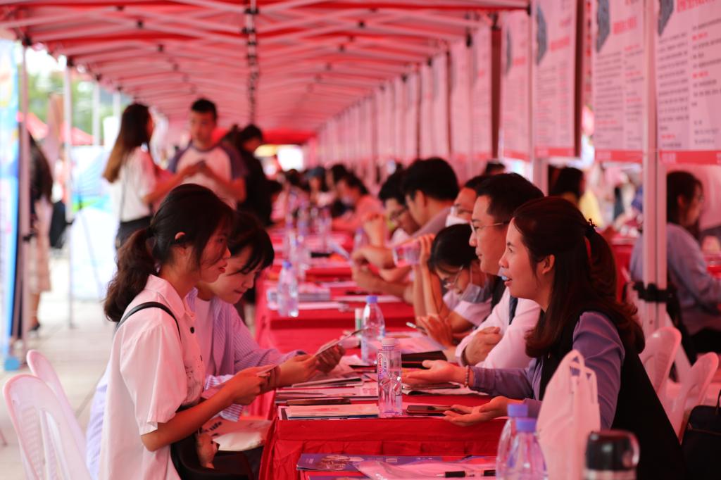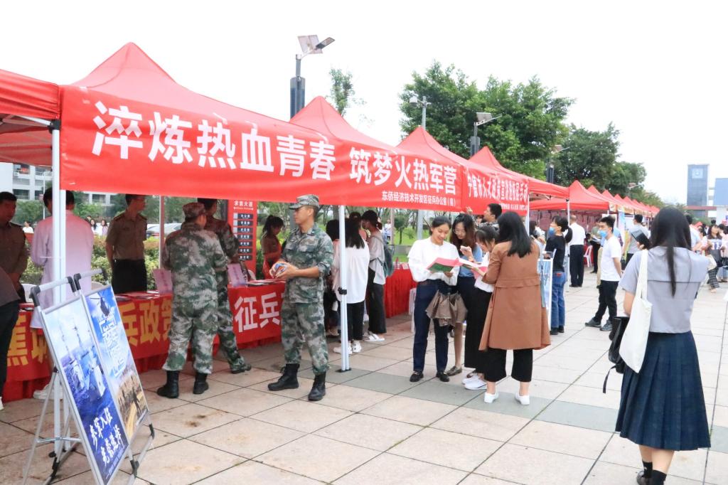 招聘会现场,宁德市人力资源和社会保障局、宁德市武装部还专门开辟了毕业生就业创业政策咨询和大学生征兵咨询点,现场发放相关宣传材料,开展政策宣传和就业指导。