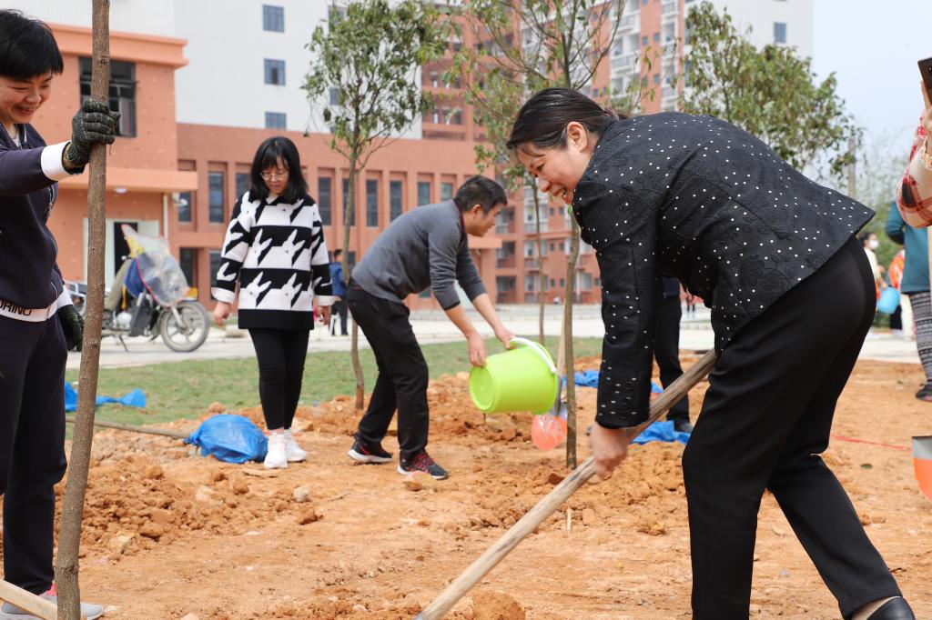草长莺飞季,植绿正当时。3月19日,我校开展“美丽宁师·青春绘就”主题植树活动,校党委书记夏良玉等校领导与200多人师生一起集体植树。现场,三五个人为一组,拿上锄头、沙铲、水桶等工具,挖坑、铲土、扶苗、填泥、浇水……现场有序又火热。经过一上午努力,200多棵香樟树迎风而立,为校园再添一片新绿。
