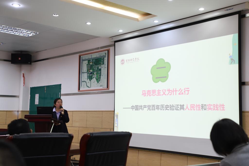 “中国共产党为什么能救中国?新中国为什么能站起来?改革开放以来中国人民为什么能富起来?党的十八大以来中国为什么能走向强起来?……”3月16日下午,马克思主义学院开展党史学习教育集体备课会,8位思想政治理论课教师围绕“学史明理、学史增信、学史崇德、学史力行”党史学习教育目标要求,聚焦“中国共产党为什么‘能’、马克思主义为什么‘行’、中国特色社会主义为什么‘好’”,分模块分专题进行发言讨论,深刻阐释了中国共产党百年奋斗的光辉历程,做出的伟大贡献,铸就的伟大精神、形成的宝贵经验,以及始终不渝为人民的初心宗旨。与会老师从内容选题、专题框架、理论逻辑体系、案例素材运用、课件设计制作、授课对象和形式等多方面进行认真点评,分享体悟,交流思想,互相提高和促进。