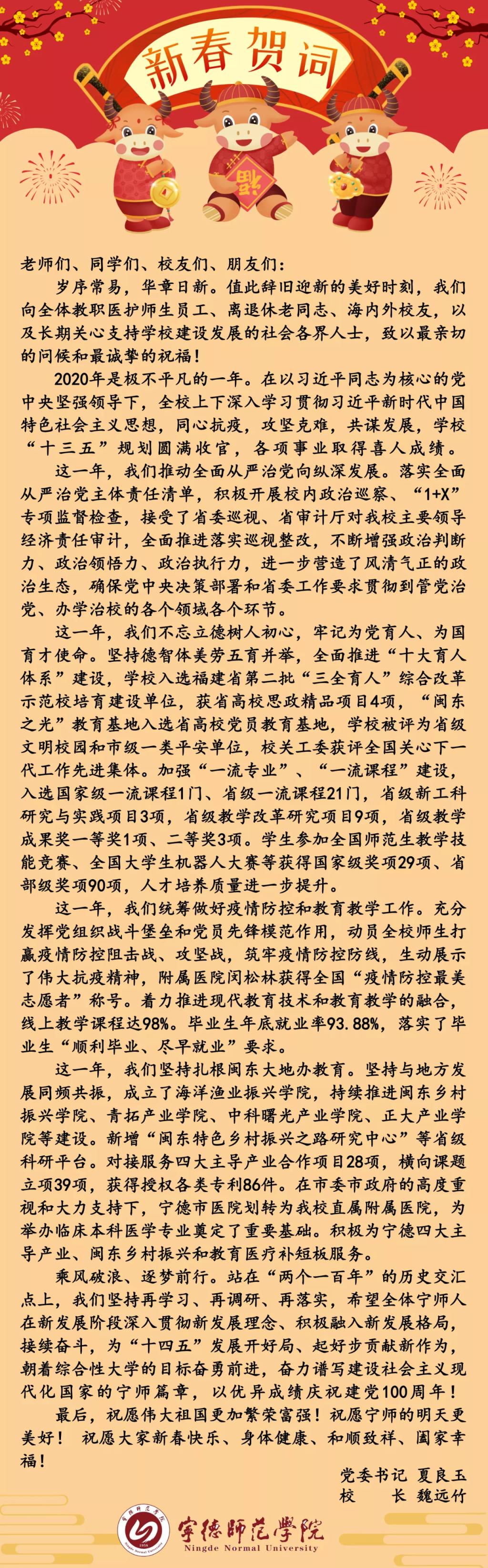 宁德师范学院2021年新春贺词