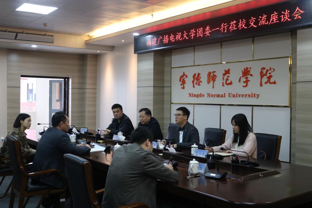 12月11日上午,福建广播电视大学团委书记黄生春率领福建广播电视大学团委、青年教职工一行十五人到我校参观交流。校团委全体人员参加了座谈会,宁德团市委副书记林妃、福建广播电视大学宁德分校团委书记余水淮陪同交流。