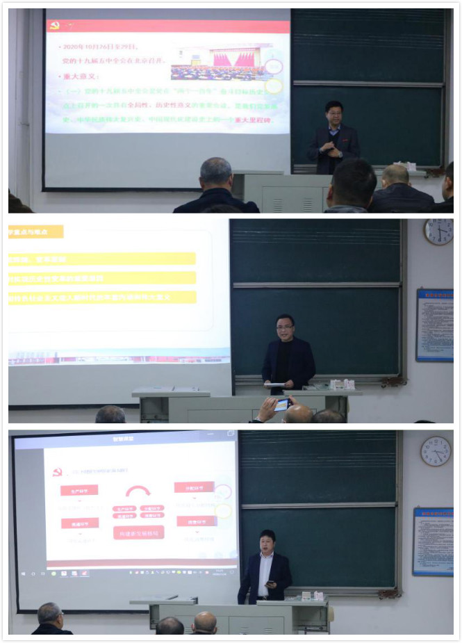 2020年12月8日下午,马克思主义学院举办“党的十九届五中全会精神进课堂”集体备课会。校党委书记夏良玉出席并讲话,马克思主义学院全体思政课教师参加了备课会。