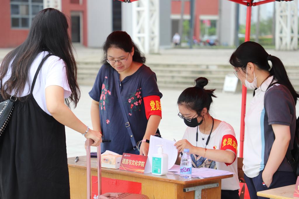 继续教育学院院长周建辉带头参加志愿服务,担任志愿服务一组组长,他说“打好学生返校防疫攻坚战是每位党员的应尽之责。作为党员干部理当闻令而动、冲锋在前、主动作为,当好学校防疫攻坚的‘排头兵’,做护航学生平安返校的‘摆渡人’。”