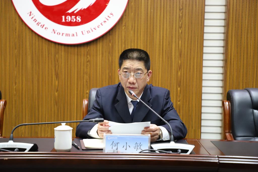 何小敏表示,主题教育开展以来,宁德师院深入学习贯彻习近平新时代中国特色社会主义思想,认真落实中央部署及省委要求,加强领导、精心组织、扎实推进,主题教育取得了丰硕成果。学校学习贯彻习近平新时代中国特色社会主义思想取得新成效,师生党员思想政治受到深刻洗礼,干事创业、担当作为的精气神得到提振,师生群众最急最忧最盼的问题得到有效解决,党员增强了对保持清正廉洁的认识,涵养了风清气正的政治生态。宁德师院把习近平总书记“我们应怎么办好教育”的理念思想和关怀嘱托作为重大政治责任,以“举旗帜、育新人,找差距、抓落实”“五个结合、五个走前头”的目标要求推动主题教育扎实深入开展,学习强国、福建日报等校外主流媒体先后60余次报道学校主题教育开展相关做法,实现了营造了浓厚氛围。总体来看,主题教育呈现出以下特点:精心组织,领导带头走在前;把握主线、立德树人走在前;直面问题,边查边改走在前;两手抓两促进,学以致用走在前。