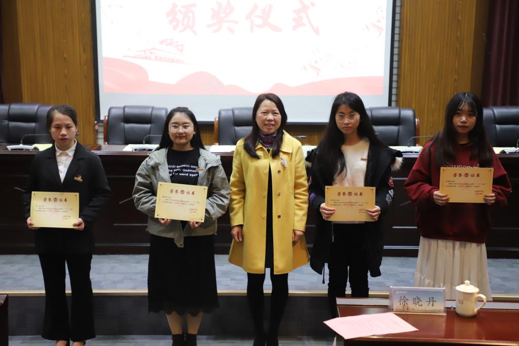 在“一马当先”知识竞赛颁奖仪式上,队长裴琼倩对“一马当先”知识竞赛做了总结,详细讲述了“一马当先”知识竞赛团队今年暑假集训40多天、经历四轮次测试选拔的学习奋斗历程。最终,我校代表队在第四季福建省高校大学生学习马克思主义理论“一马当先”知识竞赛本科组38所参赛高校中脱颖而出,总分全省高校排名第六,取得团体三等奖、两个个人优秀奖的佳绩。夏良玉、徐晓丹和陈旺玉等校领导分别为获奖的同学颁奖。