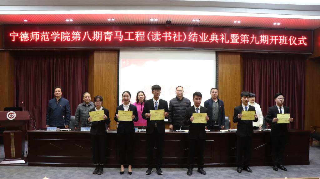 12月31日,我校2019年大学生学习马克思主义理论“一马当先”知识竞赛颁奖仪式、第八期青马工程(读书社)结业典礼暨第九期开班仪式在行政楼报告厅举行。校党委书记夏良玉、校党委副书记徐晓丹、校党委委员副校长陈旺玉出席活动,党委宣传部、学工处、马克思主义学院、团委负责人、“青马工程”培训班班主任、各学院的团委书记以及第八、九期“青马工程”学员、“一马当先”知识竞赛团队成员参加了活动。活动分为“一马当先”知识竞赛颁奖仪式、第八期青马工程结业仪式、第九期青马工程开班仪式三个阶段。活动由校团委副书记张秋良主持。