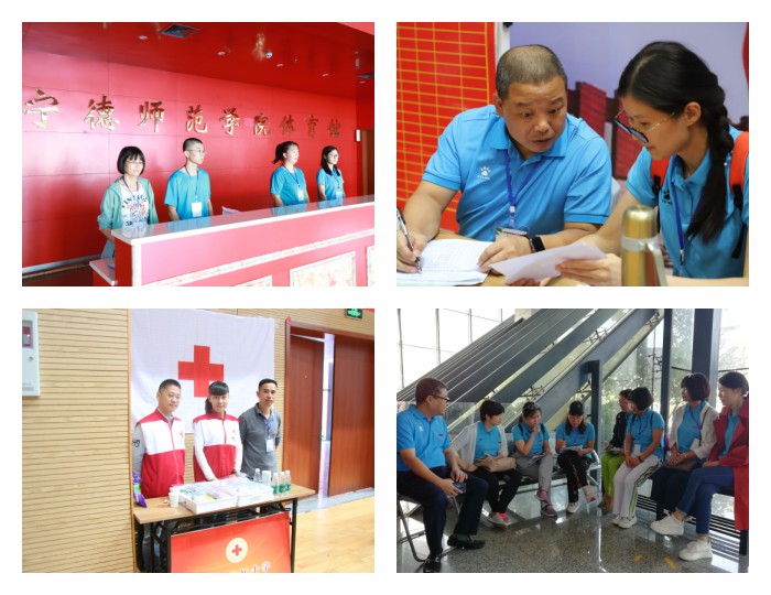 本次运动会,一支身着蓝色上衣的党员师生志愿者成为亮点。100多名党员师生结合“不忘初心、牢记使命”主题教育,开展为运动员、裁判员办实事活动,用心、用情、用智、用爱为选手提供周到服务,为赛事保驾护航。细致到位的服务受到了各地、各高校参赛代表的充分肯定,不仅为本次运动会顺利举办提供了重要保障,同时为宁师树立了形象、增添了光彩、赢得了掌声。
