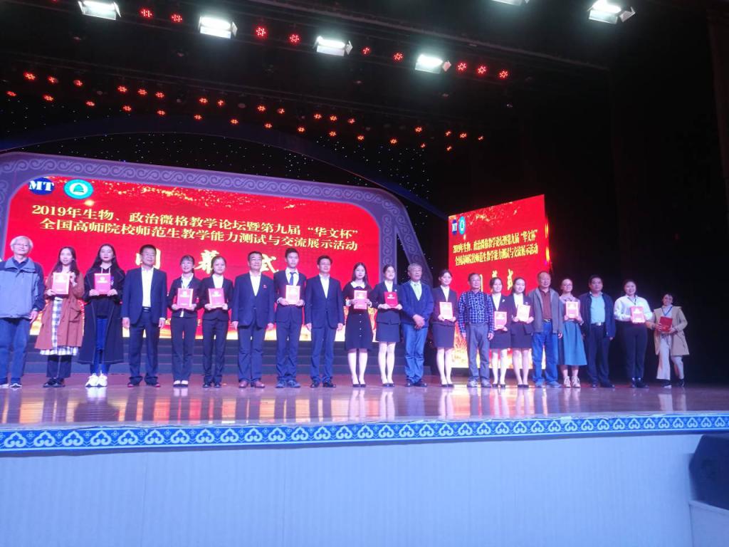 9月21日至22日,第九届“华文杯”全国师范院校师范生(生物、政治)教学技能交流演示活动在内蒙古自治区乌兰察布市集宁师范学院顺利举行。来自北京师范大学、东北师范大学、华中师范大学、华南师范大学、山东师范大学、南京师范大学、湖南师范大学等全国86所高校的379名生物科学师范生参加本届大赛。我校由罗芬教授和林雄平副教授带队,5名2016级生物科学专业本科生组成的参赛队伍在大赛中喜获佳绩。