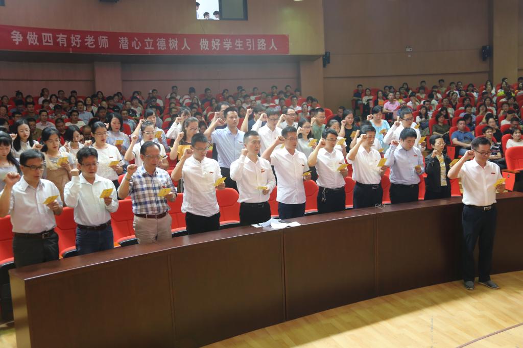 为庆祝第三十四个教师节,9月10日下午,我校在新校区图书馆报告厅举办“弘扬高尚师德,潜心立德树人”2018年教师节庆祝表彰大会,共同学习省委书记于伟国回信精神,对在教书育人工作中表现突出的先进个人进行表彰。全体校领导出席会议,校党委书记夏良玉宣读回信内容并作大会致辞,校长魏远竹主持会议。