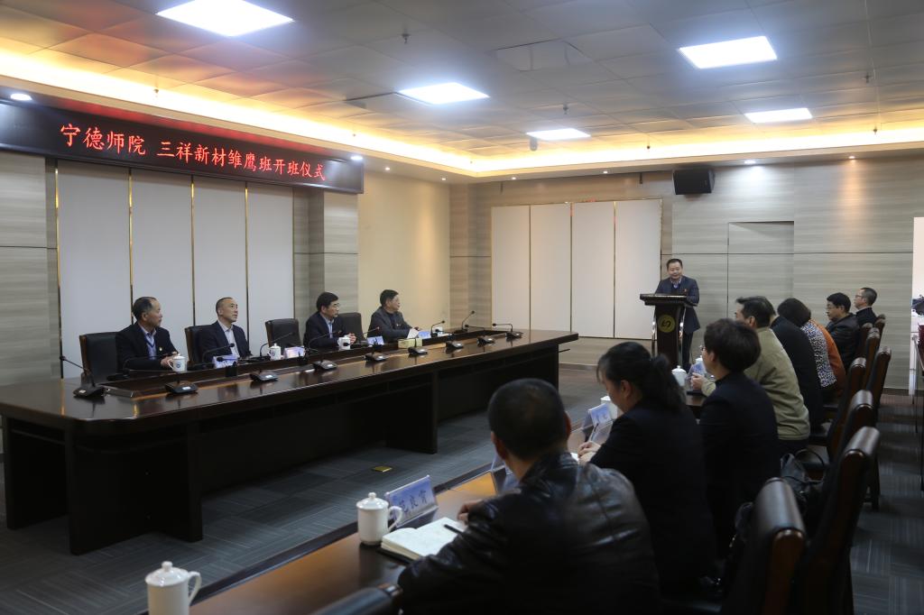 12月29日下午,我校在行政楼二楼会议室举行了三祥新材雏鹰班的开班仪式。校长魏远竹、副校长谢向东、三祥新材股份有限公司董事长夏鹏、技术总监叶旦旺以及宁德师范学院相关院部领导、三祥新材股份有限公司相关部门领导、三祥新材雏鹰班学生参加了开班仪式。开班仪式由化学与材料学院副院长应少明主持。