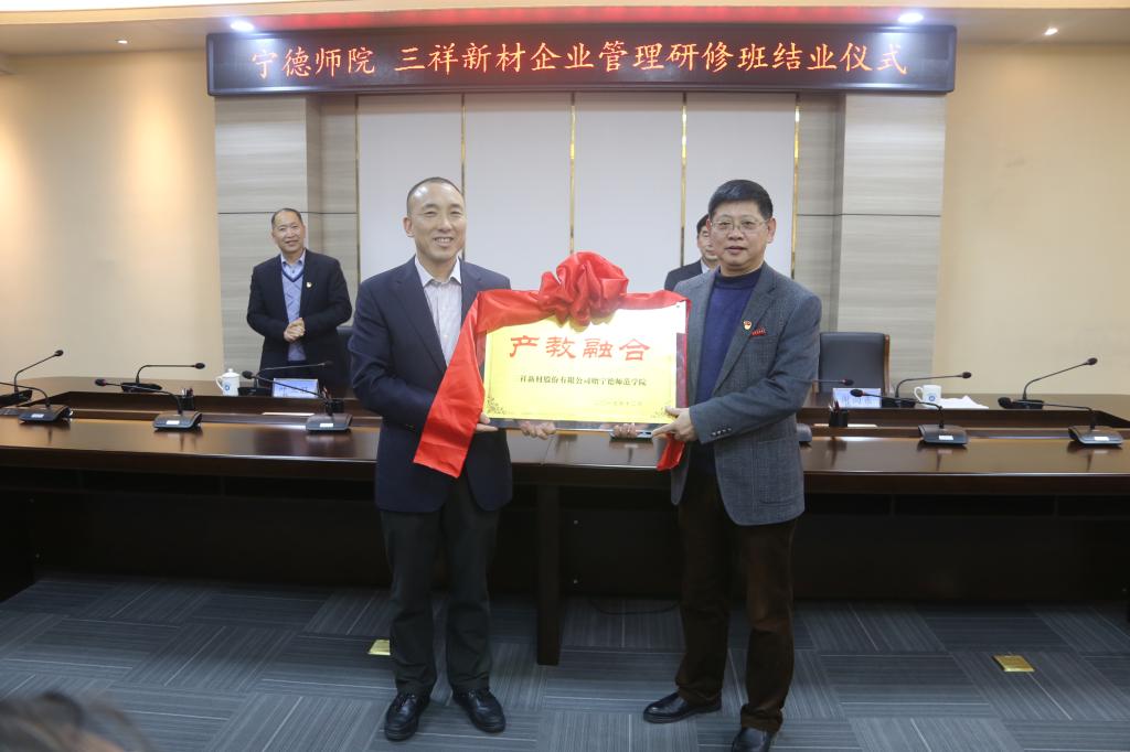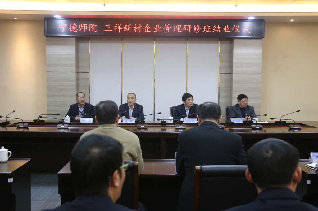 12月29日下午,宁德师范学院三祥新材企业管理研修班结业仪式在东侨校区行政楼二楼会议室举行。校长魏远竹、副校长谢向东、三祥新材股份有限公司董事长夏鹏、技术总监叶旦旺以及宁德师范学院相关院部领导、三祥新材股份有限公司相关部门领导,全体参训人员参加了结业仪式。继续教育学院副院长周建辉主持仪式。