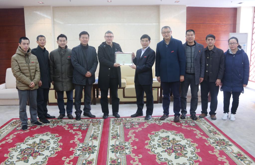 12月18日上午,德国友城施佩尔市艺术家马丁·埃克里奇到我校交流访问,并赠送其书画作品《时间轴》。校党委书记夏良玉、校长魏远竹在二楼会议室接见了马丁·埃克里奇。