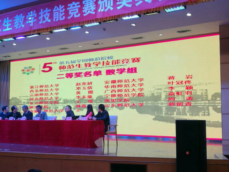 经过教学设计、多媒体课件制作、即席讲演、模拟上课·板书等四个环节的激烈角逐,我校数理学院的俞虹羽同学荣获二等奖,化学与材料学院的杨婷同学荣获三等奖。