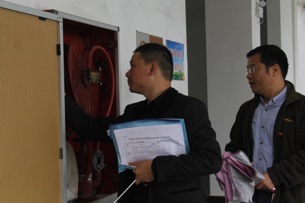 11月29日,宁德市教育局“两项标准化”考评小组到我校考查安全标准化期满复评和消防安全标准化管理达标工作。校长魏远竹、副校长谢向东会见了考评组组长王承挺副局长等一行,学校相关部门负责人陪同。