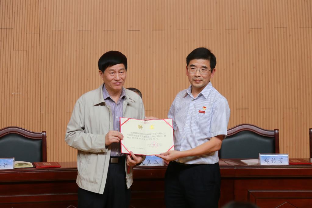 魏远竹校长为郑传芳教授颁发宁德师范学院特聘教授和习近平新时代中国特色社会主义思想研究中心顾问的聘书
