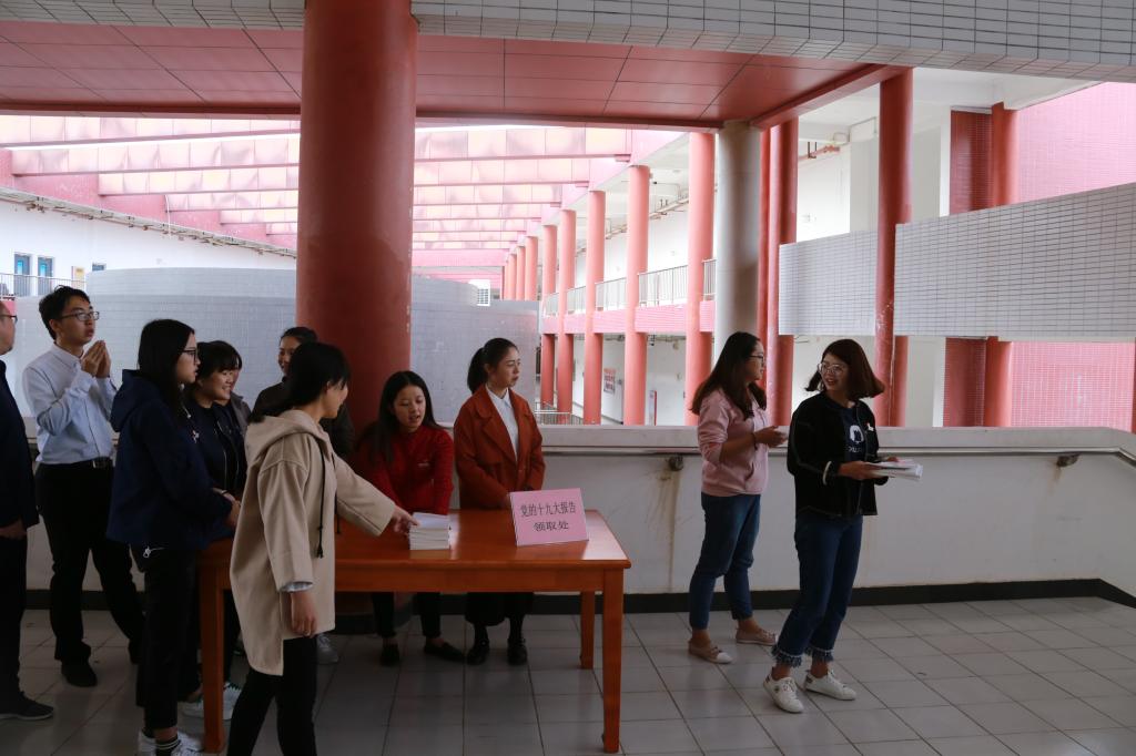校领导为我校学习宣传贯彻党的十九大精神教师宣讲团和学生宣讲队颁发聘书。