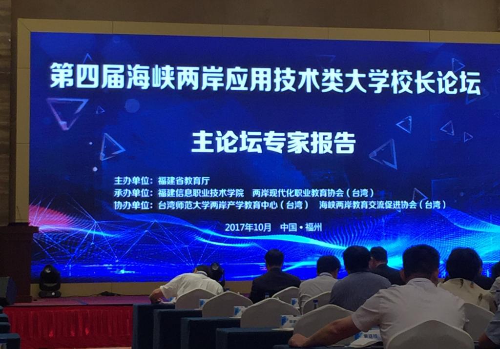 第四届海峡两岸应用技术类大学校长论坛由福建省教育厅主办,福建信息职业技术学院、两岸现代化职业教育协会(台湾)承办。论坛以“分享·融合·突破·跨越”为主题,旨在搭建两岸职业教育交流平台,共同建设具有中国特色又有国际竞争力的现代职业教育,培育能适应经济社会发展所需的职业教育应用技术型人才。
