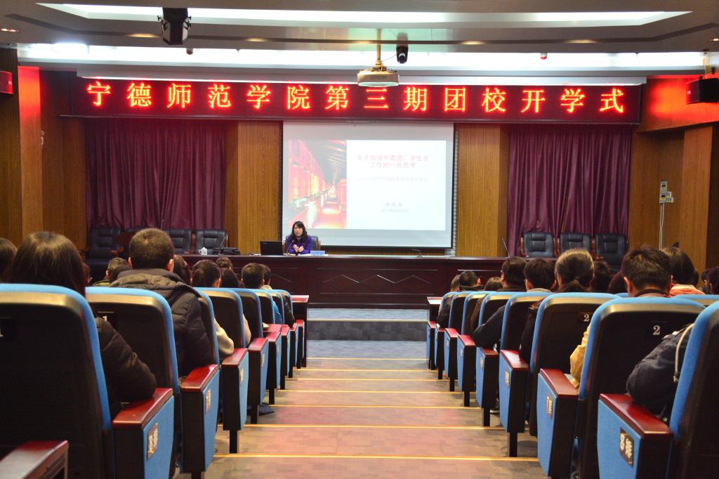 3月21日,我校第三期团校开学式在东侨校区行政楼三楼报告厅举行。校党委副书记徐晓丹出席开学式并做辅导报告。校团委干部、各系团委书记、第三期团校学员参加会议。开学式由团委副书记张秋良主持。