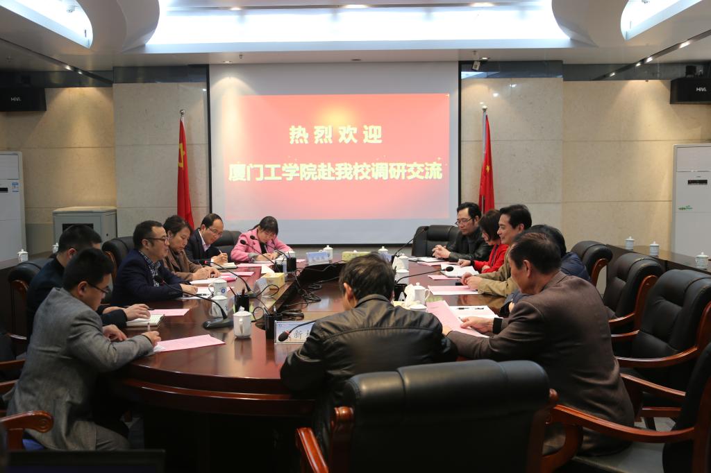 会上,陈济川简要介绍了我校基本办学情况,重点介绍了学校迎接教育部本科教学工作合格评估的整体部署、评估专家进校前的工作安排、评估资料准备等具体迎评工作。冯良贵介绍了厦门工学院的基本情况,说明了此次考察的目的。双方围绕迎评工作进行深入交流。相关部门也分别进行了对口交流。