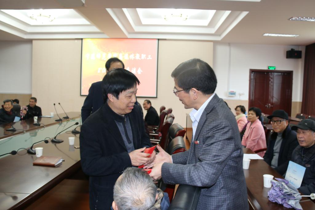 校党委书记夏良玉代表校党委、校行政向离退休教职工致以新年祝福和节日问候。他指出,学校有今天的长足进步与发展,离不开老同志们艰辛工作打下的坚实基础,离不开老同志长期地关心与支持。老同志用自己高尚的品德、丰富的阅历、智慧和经验,积极建言献策、支持学校发展,助力和谐,是学校一支重要力量。希望老同志们不忘初心、永葆本色,作全面从严治党的坚定支持者与模范践行者,讲好宁师故事、弘扬宁师精神、传播宁师声音。他表示,在新的一年,校党政领导将一如既往地重视老干工作,形成敬老、为老、助老的良好氛围,用心用情做好老干工作,政治上尊重、思想上关心、生活上照顾,多办实事好事,让老同志发挥作用、快乐生活。
