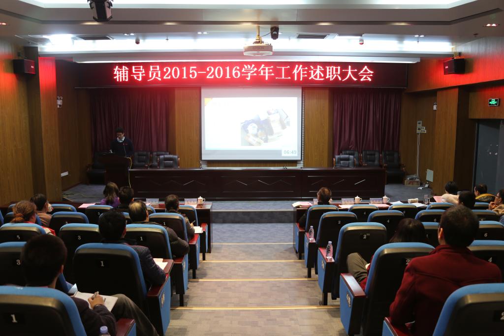 1月11日,我校辅导员2015-2016学年工作述职大会在东桥校区办公楼三层报告厅顺利召开。校党委副书记徐晓丹莅临现场,宣传部部长赵公弼、校学生工作领导小组成员单位负责人及各系学生工作负责人出席大会。