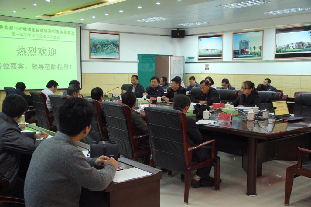 1月6日下午,绿色能源与环境催化福建省高等学校重点实验室第一届学术委员会第二次会议在东侨校区求知楼A308会议室召开。应邀出席会议的领导有:福州大学化学学院原院长王绪绪教授,中科院福建物构所、结构化学国家重点实验室主任郭国聪研究员,中科院福建物构所海西研究院院长助理郑发鲲研究员,中科院福建物构所晶体材料研究所所长叶宁研究员,福建师大材料科学与工程学院院长林金火研究员,福建师大环境科学与工程学院院长陈庆华教授级高工,华侨大学材料科学与工程学院原院长林志勇教授等第一届学术委员会委员,以及我校副校长谢向东。我校科研处负责人、重点实验室建设工作小组成员、科研骨干等参加会议。