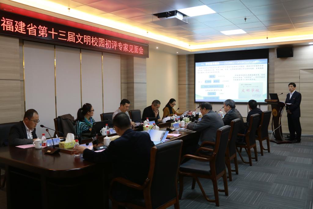 1月5日下午,由泉州师范学院党委副书记林伟担任组长的福建省第十三届文明校园初评第十四组考评组一行5人莅临我校,对两年来文明创建工作进行实地考评。