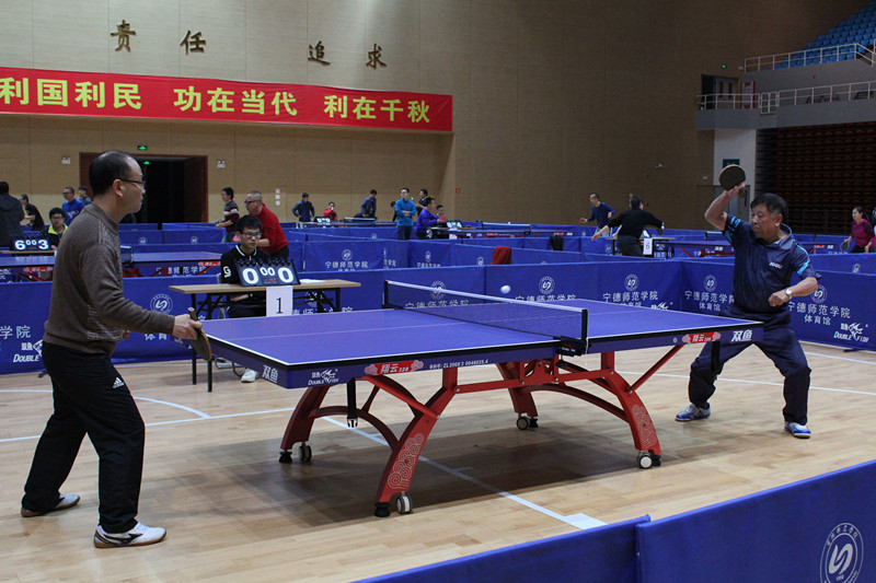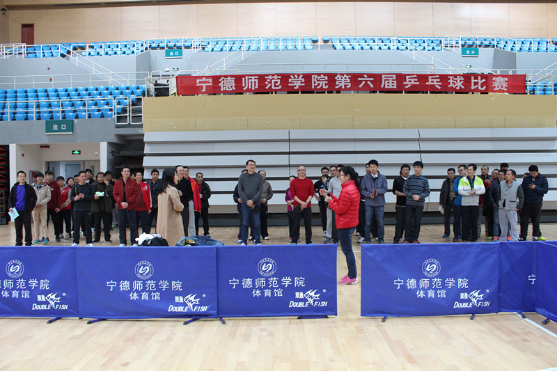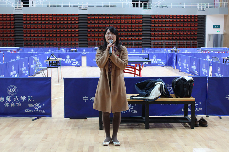 夏良玉书记宣布宁德师范学院第六届教职工乒乓球比赛开赛。