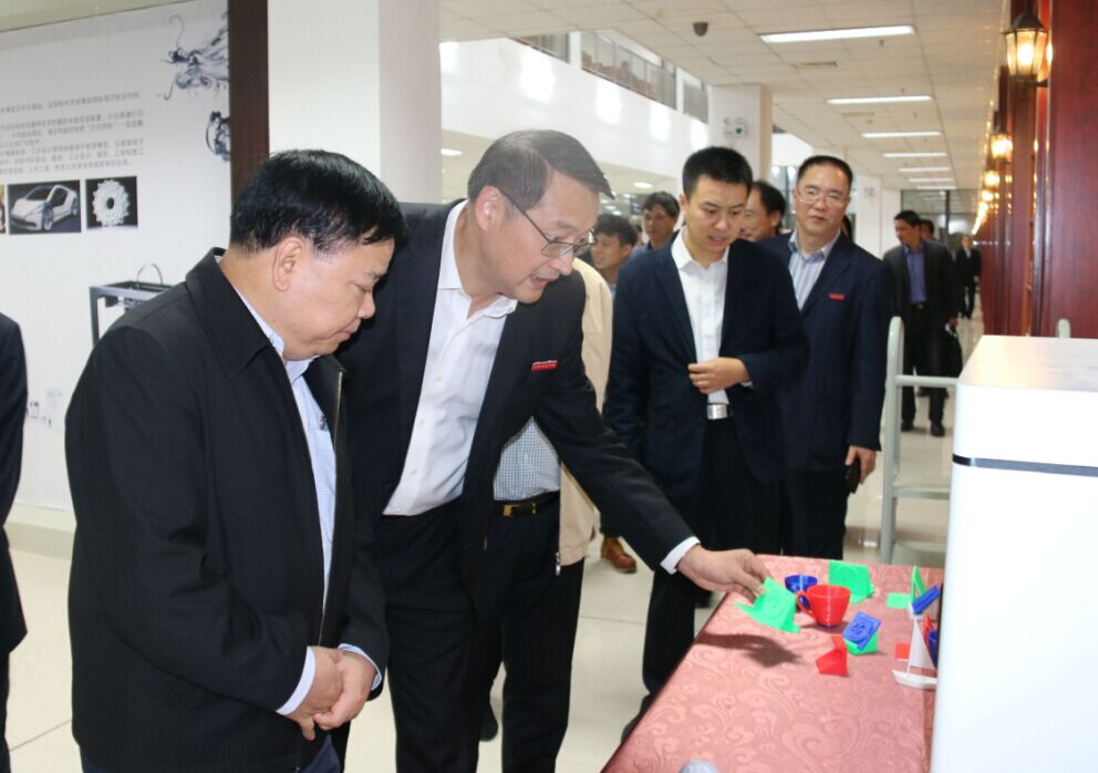 调研组领导在创客体验区观看学生的3D打印作品