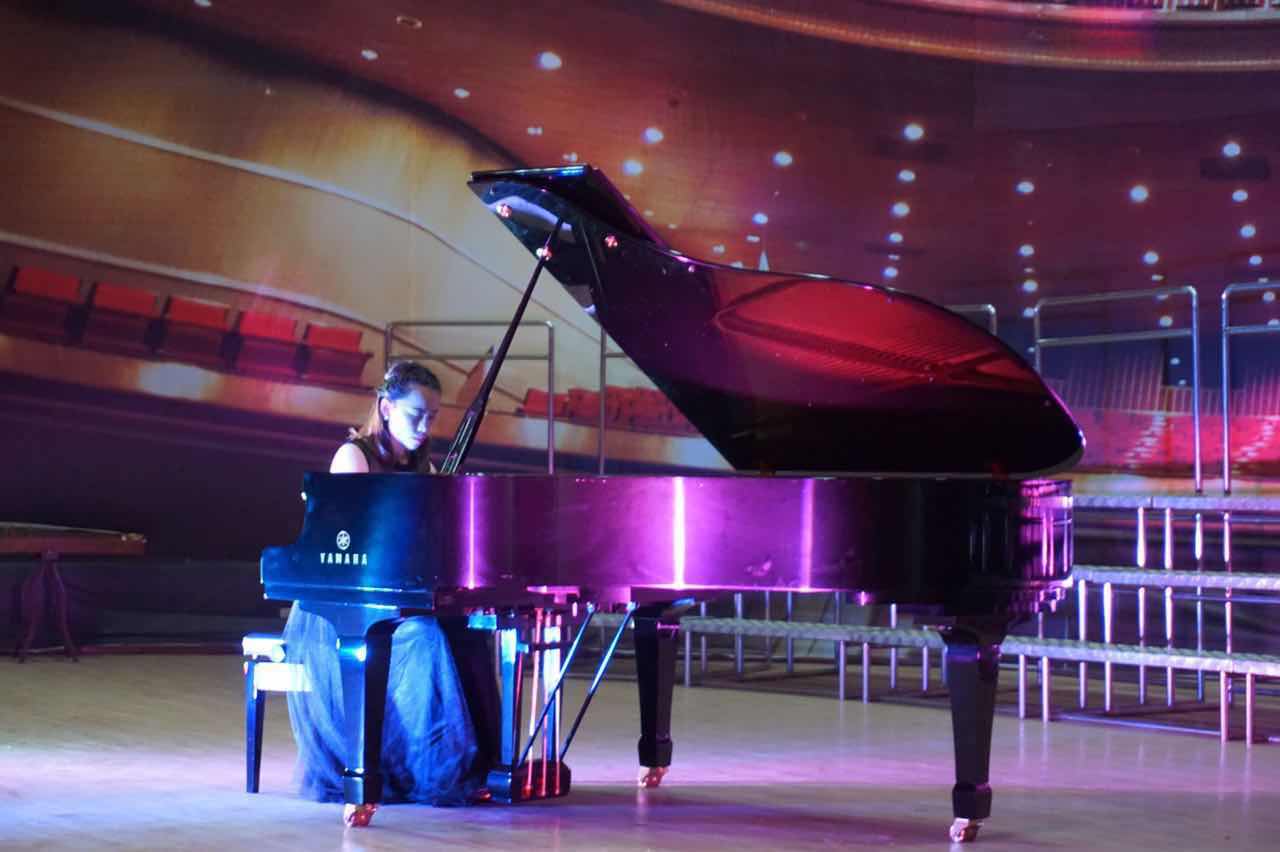 开场曲目《小小竹排》的演奏者--15级学生邱雨旋,用熟悉的旋律和流利的演奏,将全场听众带入了音乐的世界。随后,包括刘嘉敏、郑海婷、李昕雨等全市钢琴大赛获奖者在内的10位14级、15级学生轮流上台,为现场听众演奏了奏鸣曲、圆舞曲、回旋曲等不同风格的世界著名钢琴曲,时而婉转、时而跳跃、时而舒缓、时而低沉。在奉献精彩演出的同时,向老师和同学们展示了她们的扎实的功底和熟练的技巧。现场气氛活跃,听众反响良好,不时响起热烈的掌声。