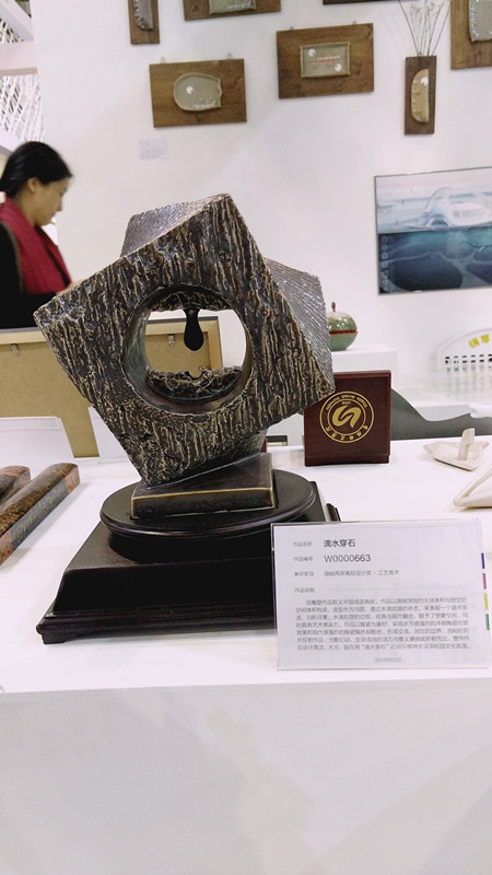 11月4至7日,由中共中央台办、文化部、国家新闻出版广电总局主办,福建省人民政府、厦门市人民政府、台湾亚太文化创意产业协会承办的“第九届海峡两岸文化产业博览交易会”在厦门国际会展中心举行。我校颜桂炀教授指导设计的“滴水穿石”陶瓷工艺品和银饰工艺美术作品,经文博会评委会初评入围。展会期间,中外许多客商在展台前驻足观看,欣赏作品,详细询问作品的设计理念和制作工艺。客商们对作品评价颇高,兴趣盎然。