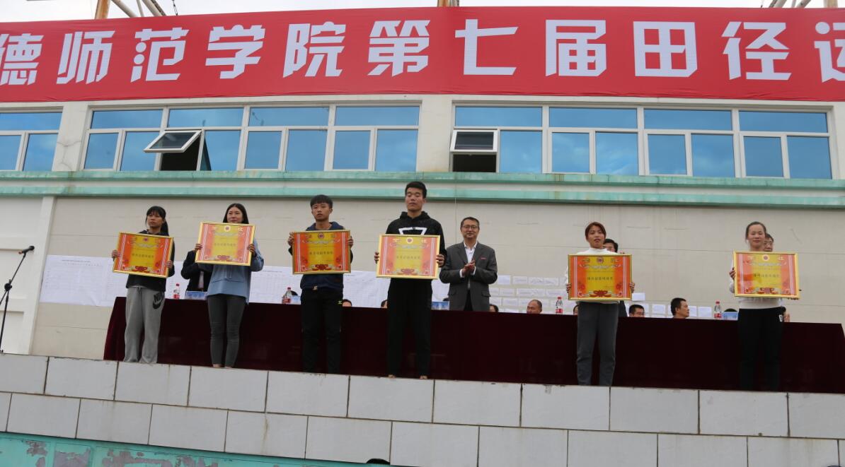 闭幕式上,总裁判长郑俊秋老师宣布本届运动会总成绩。公体组数学系以总分279分摘得桂冠,物理系、化学系、中文系、教育系分列二至五名;体育组总成绩位居前三名的分别是2015级体教1班、2014体教1班和2015体教2班;教职工八人九足趣味比赛中,体育系、计算机系、教育系位列前三甲。校党委宣传部部长赵公弼宣布了获得本届运动会“体育道德风尚奖”的六支代表队,分别是物理系、中文系、经管系、数学系、2015级体教2班和2016级体教2班。校领导分别为获奖单位颁奖。