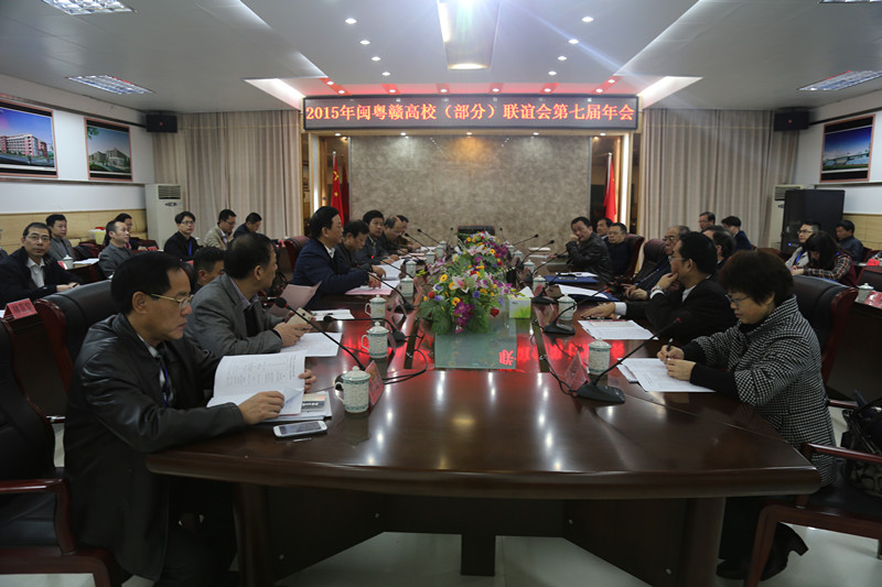 会议在我校求知楼A308举行。赣南医学院校长韩立民,三明学院校长刘健,韩山师范学院副校长廖伟群,嘉应学院副校长刘明贵,汕头大学党委副书记罗念潮,仲恺农业工程学院党委副书记向梅梅,惠州学院副校长许玩宏,赣南师范学院副校长陈春生,闽南师范大学党委副书记吴彬强,龙岩学院副校长李源江,莆田学院副校长宋一然,三明学院副校长赖锦隆,武夷学院副校长陈金瑞;我校党委书记江小源,校长林跃鑫;粤闽赣高校(部分)相关部门领导、专家,以及我校党政办、宣传部、学工处、人事处、科研处、教务处、发展规划处等负责人参加了会议。会议由林跃鑫校长主持。