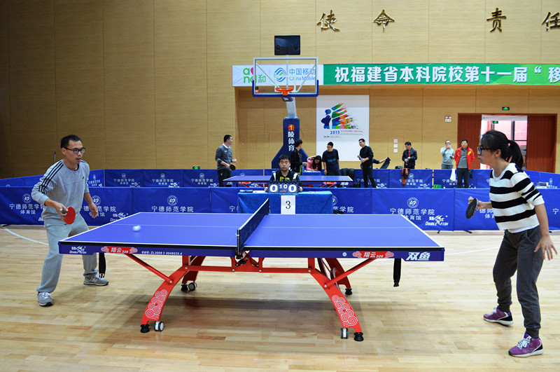 11月18日,我校第五届教职工乒乓球比赛在东侨校区体育馆举行。经过一整天紧张激烈的角逐,12支团体参赛队伍中获得团体前六名的分别是:机关1代表队、机关2代表队、体育系代表队、经管系代表队、机关3代表队、生物系代表队。获得男子个人单打前八名的分别是:江小源、赖建强、王昌雷、赖艳华、黄德焱、龚梓兵、赵公弼、陈济川;获得女子个人单打前六名的分别是:陈芳、谢丹华、刘锡铃、江容眉、俞淑萍、高晓丽。