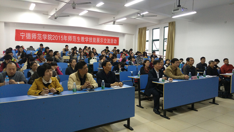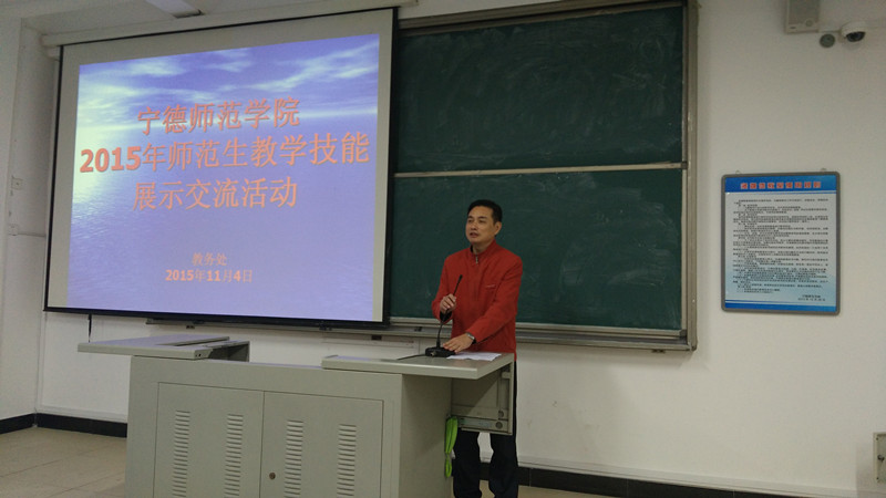 为加强师范生的教学技能训练,培养师范生的教学技能创新能力,提升师范生的综合素质和就业竞争力,我校在上半年开展学院第二届师范生教学技能竞赛的基础上,于11月4日,在东侨校区求知楼B301、B201教室成功举办2015年师范生教学技能展示交流活动。副校长谢向东,教务处处长陈济川、副处长蔡永香,教师教育课程教研部主任赵峰、副主任邓惠明出席活动,各专业系教学技能竞赛指导教师及部分师范生近200人到场观摩。本次活动分为启动仪式、模拟展示、专家点评、师徒结对交流指导四个环节。