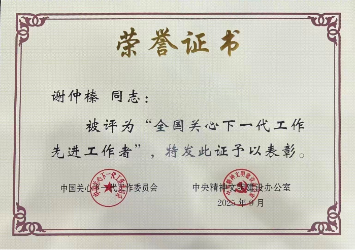 谢仲榛同志被评为全国关心下一代工作先进工作者