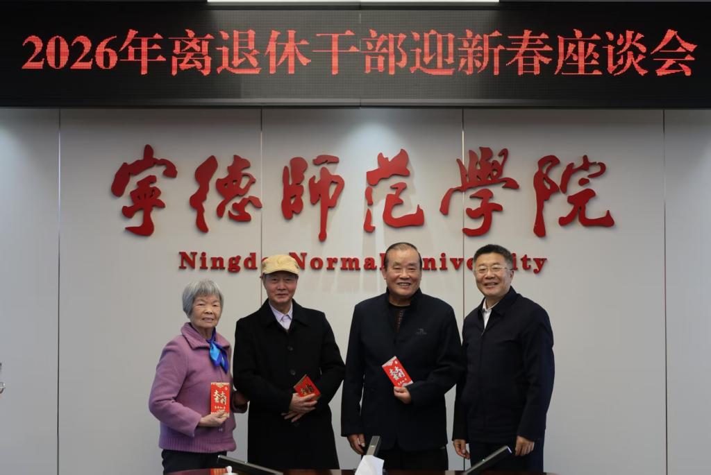 1月16日,我校2026年离退休干部迎新春座谈会在行政楼二楼会议室召开。校党委书记林清泉、校党委副书记江潮炳、副校长颜桂炀,以及相关职能部门负责人与我校30余名离退休教职工代表欢聚一堂,畅谈桑榆情致、共谋学校发展、共抒教育情怀。座谈会由江潮炳主持。