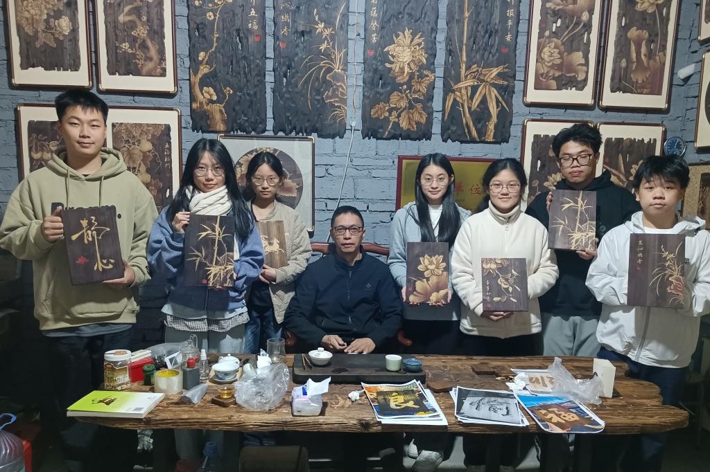 《火烧古木画制作》由丁建发老师自主发明,已斩获四项发明专利。该项制作工艺以火为笔、以木为纸,将传统工艺与现代教育深度融合,课堂上,丁老师指导学生从筛土调浆、挤涂泥浆,到精准烧刻、抛光清洗,一步步解锁火与木的艺术对话。该制作工艺简单,易教易学,打破了传统手工技艺的学习壁垒,学生在课堂上能够快速融入实践创作,每人都能当场独立完成一件小作品,在动手实践中收获满满的体验感与成就感。如今,这门课程已成为学校的热门课程,不仅有效激发了学生对传统工艺的热爱,更让非遗之美在青春的指尖焕发新生。